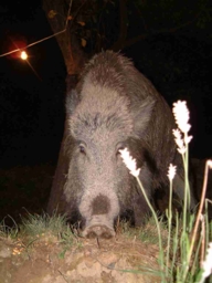 La visita dei Cinghiali continuò anche le sere successive ma la loro osservazione era resa difficile dal buio e dal fitto dei cespugli così che una sera, uno dei tre amici, prese l’iniziativa di utilizzare una pila senza curarsi delle proteste degli altri i quali temevano che i Cinghiali spaventati fuggissero.